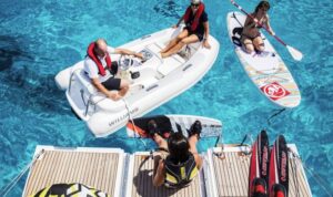 Aktivní lidé mohou vyzkoušet vodní lyžování nebo plachtění za jachtou. Synchronní skoky z jachty do vody mohou vytvářet pozitivní vibrace a potěšení. Můžete jít na ryby a pak se všem pochlubit obrovskou rybou, kterou jste ulovili a pozvali na večeři.